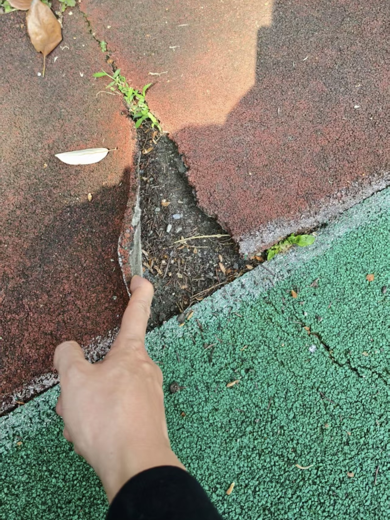 塑胶跑道的损坏情况多种多样,不同的损坏程度和类型,决定了后续处理方式的不同。