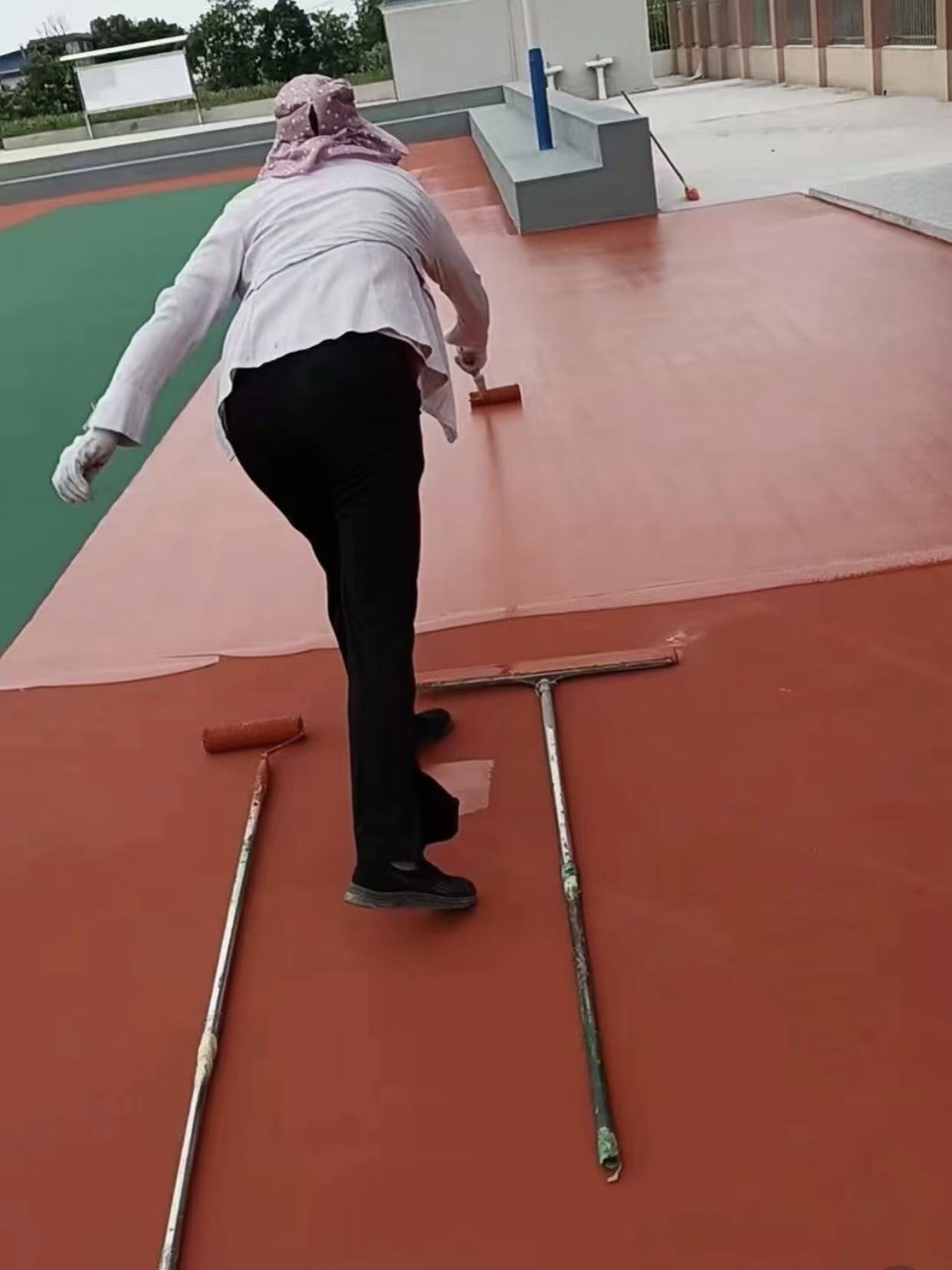 弹性层材料一般由丙烯酸乳液、橡胶颗粒、助剂等组成。在铺设弹性层前,需要根据设计要求和场地面积,计算好弹性层材料的用量,并将其按照一定的比例进行调配。调配好的弹性层材料要充分搅拌均匀,确保橡胶颗粒均匀分布在材料中。