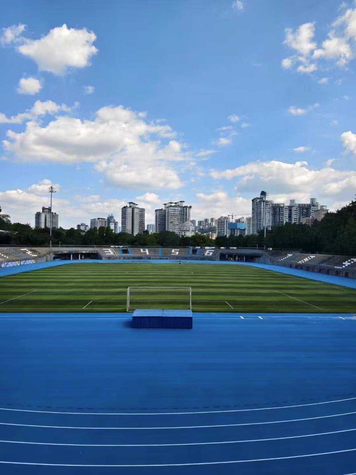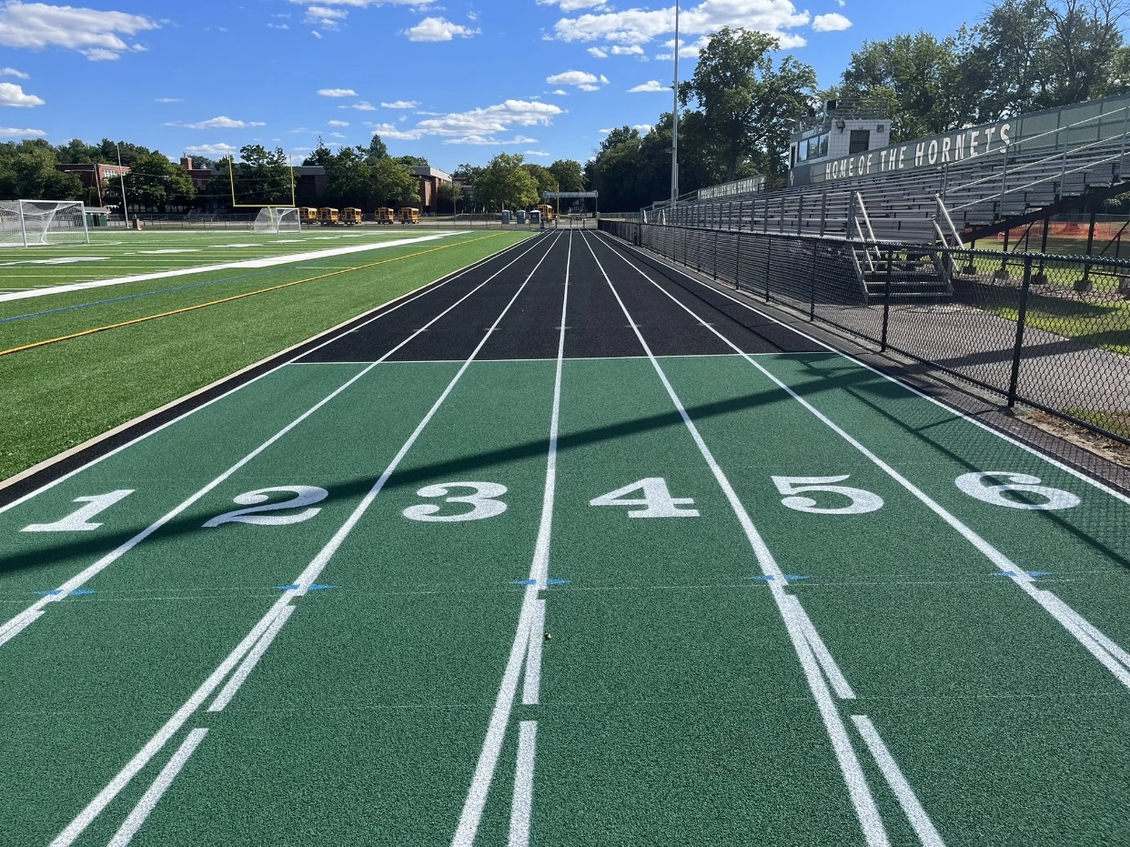 要是材料质量问题导致的起鼓翘边,就需要更换塑胶跑道材料。将起鼓翘边的部分塑胶跑道切割下来,注意切割时要尽量保证切口整齐,避免损伤周围的跑道。然后按照原来的铺设方式,铺设新的塑胶跑道材料,确保新材料与原有跑道的衔接紧密、平整。在铺设过程中,要严格按照施工工艺要求进行操作,确保胶水涂抹均匀、铺设平整,避免再次出现起鼓翘边问题。